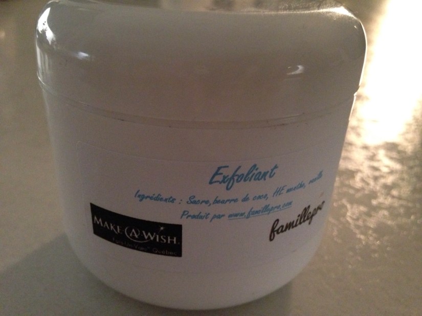 Exfoliant naturel Prix 10$ Ingrédients : – sucre – beurre de coco – huiles essentielles de menthe et de vanille Partager :PartagerTweet Cliquer pour envoyer un lien par e-mail à un ami(ouvre dans une nouvelle fenêtre) E-mail Cliquez pour partager sur WhatsApp(ouvre dans une nouvelle fenêtre) WhatsApp J’aime chargement…